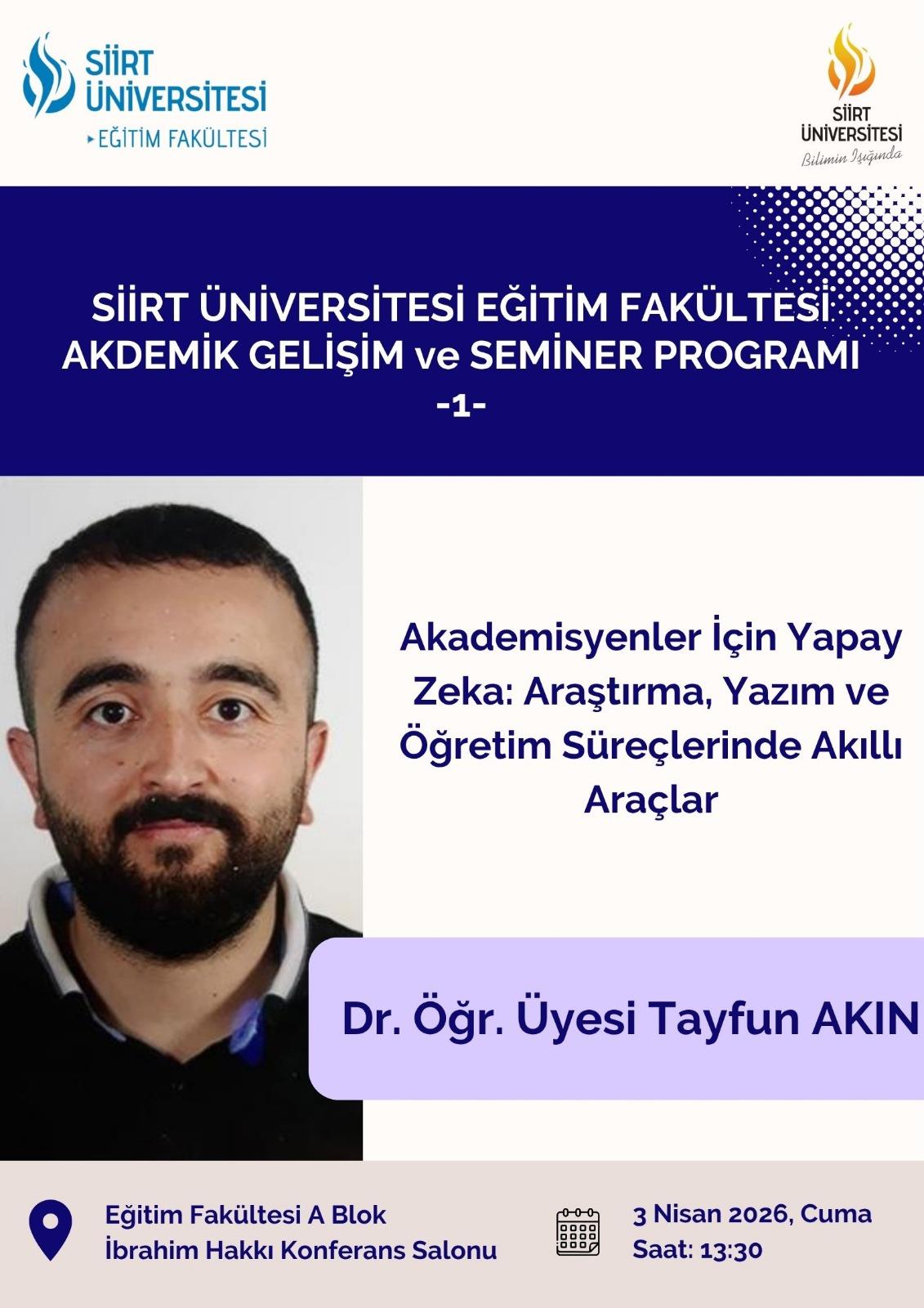 başlatıldı. Bu kapsamda düzenlenecek seminerlerin ilki, Dr. Öğr. Üyesi Tayfun Akın tarafından gerçekleştirilecektir.