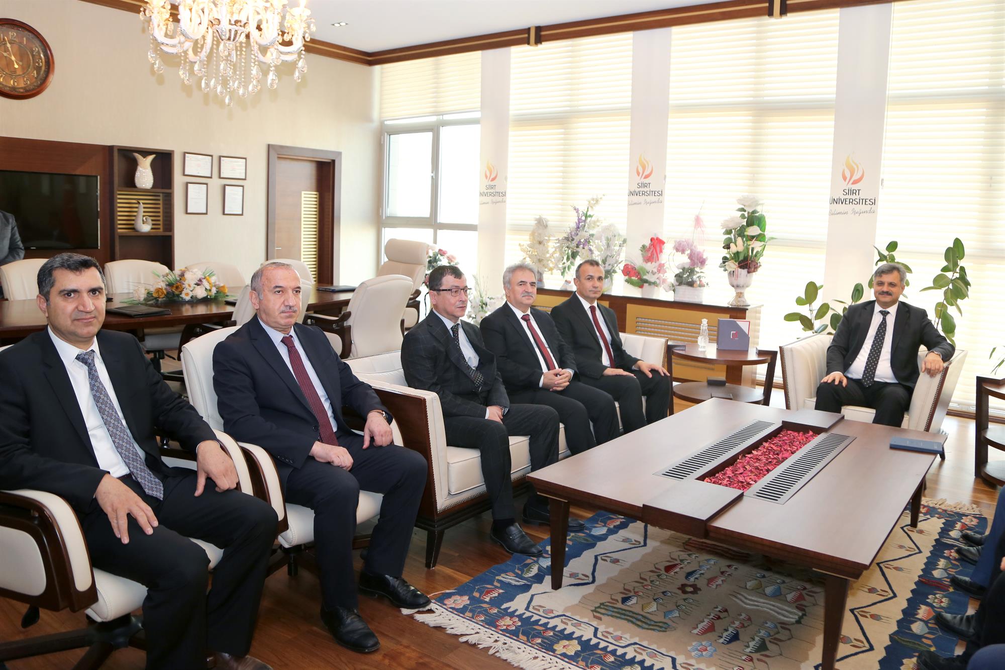 Rektörümüz Prof. Dr. Nihat Şındak, Anadolu Üniversiteleri Tecrübe Paylaşımı Çalıştayı kapsamında üniversitemize gelen Muş Alparslan Üniversitesi Rektörü Prof. Dr. Mustafa Alican ve beraberindeki heyeti makamında ağırladı.