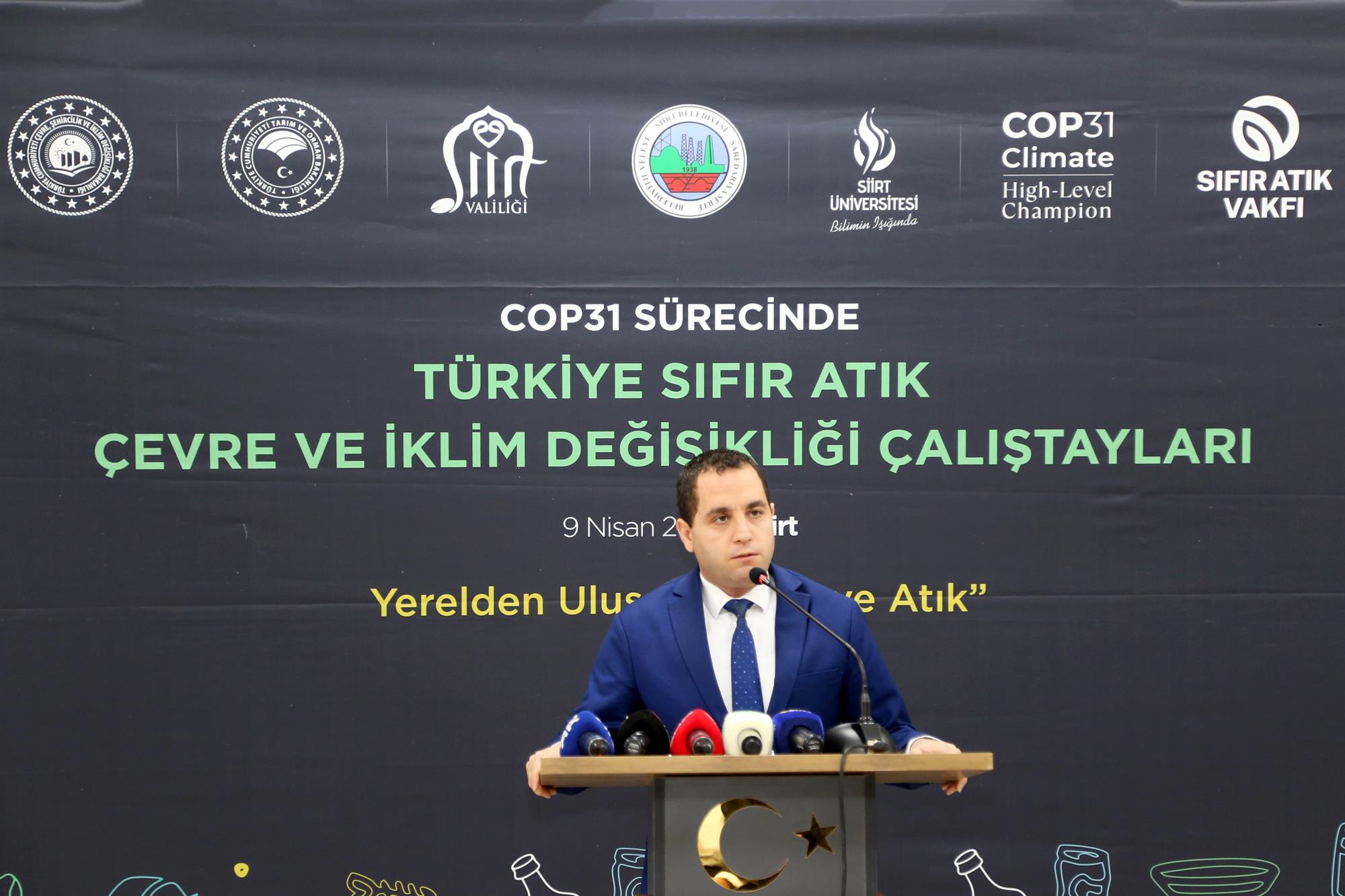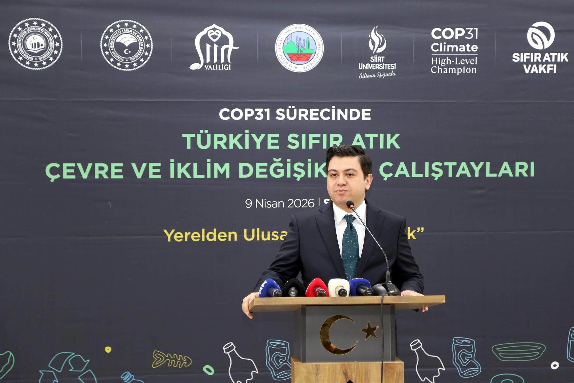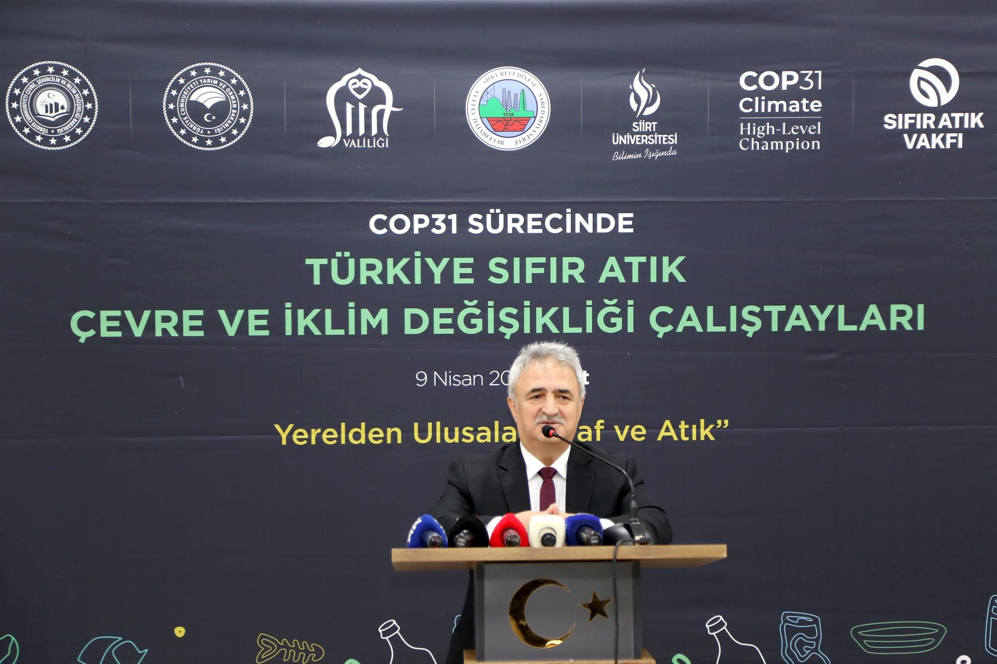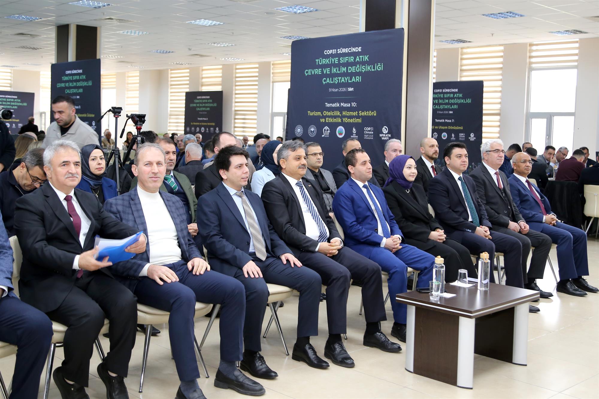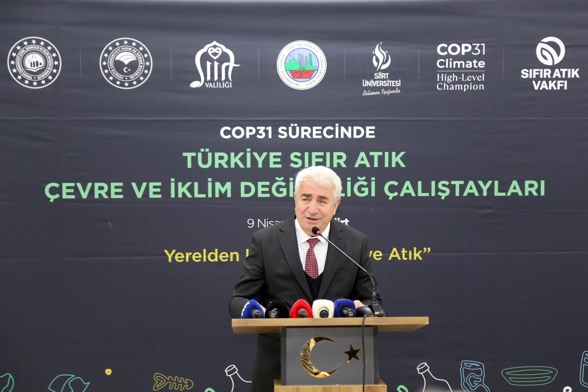 Sıfır Atık Hareketi’nin kurucusu, Birleşmiş Milletler Sıfır Atık Yüksek Düzeyli Şahsiyetler Danışma Kurulu Başkanı ve Sıfır Atık Vakfı Onursal Başkanı Sayın Emine Erdoğan Hanımefendi’nin vizyonu ve himayelerinde faaliyetlerini sürdüren Sıfır Atık Vakfı tarafından Türkiye genelinde 81 ilde hayata geçirilmesi planlanan “COP31 Sürecinde Türkiye Sıfır Atık, Çevre ve İklim Değişikliği Çalıştayları” serisinin Siirt ayağı, Üniversitemiz ev sahipliğinde ve Siirt Valiliği koordinasyonunda gerçekleştirildi. Çalıştaya Rektörümüz Prof. Dr. Nihat Şındak’ın yanı sıra Siirt Vali Yardımcıları Birkan Tatlısöz ve Rabia Naçar Çanakcıoğlu, il protokolü, Üniversitemiz üst yönetimi, akademik personelimiz, kamu kurum temsilcileri, sivil toplum kuruluşları ile çok sayıda davetli katılım gösterdi.