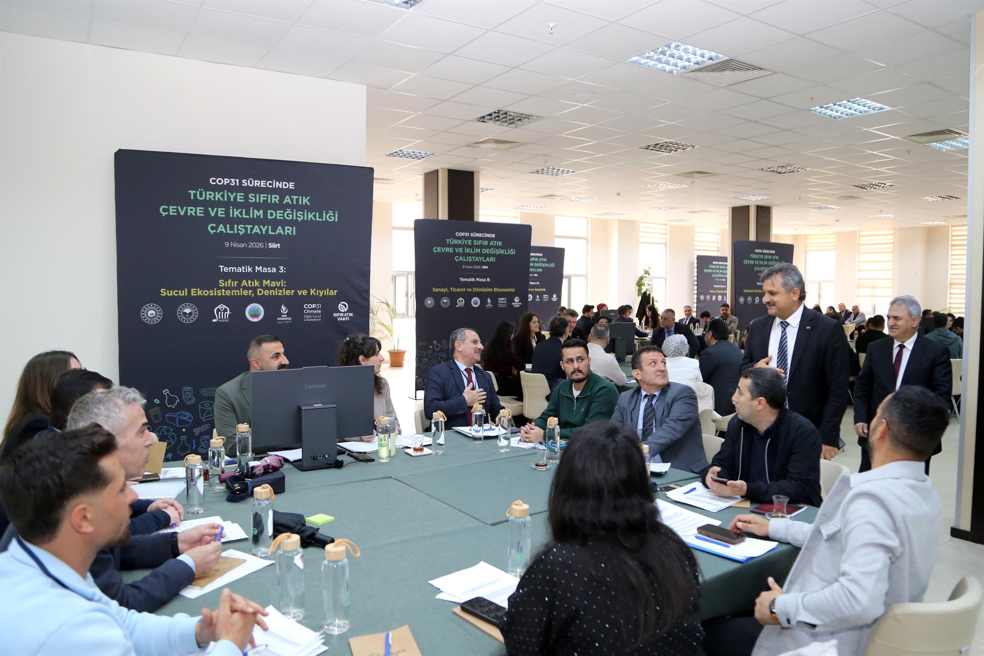 Protokol konuşmalarından sonra yapılan toplu fotoğraf çekimini takiben çalıştayın teknik bölümüne geçildi. Bu kapsamda Üniversitemiz akademisyenlerinin moderatörlüğünde oluşturulan 14 masada; “İklim, Afet ve Doğa Yönetimi”, “Su Yönetimi ve Sulama Verimliliği”, “Sıfır Atık: Mavi-Sucul Ekosistemler, Denizler ve Kıyılar”, “Gıda ve Organik Döngü”, “Ambalaj, Plastik ve Tek Kullanımlık Ürünler”, “Tekstil, Mobilya ve Tüketim Malları”, “Enerji ve Ulaşım Dönüşümü”, “Sanayi, Ticaret ve Dönüşüm Ekonomisi”, “Kamusal Alanlar, Parklar ve Meydanlar”, “Turizm, Otelcilik, Hizmet Sektörü ve Etkinlik Yönetimi”, “Kültürel, Eğitsel ve Toplumsal Dönüşüm”, “Yönetişim ve Kurumsal Sistemler”, “Finansman, Teşvik ve Dönüşüm Ekonomisi” ve “Veri Yönetimi ve İstatistik” başlıklarında değerlendirmeler yapıldı. Bu değerlendirmelerle Siirt’in çevre politikaları, atık yönetimi ve iklim değişikliğine karşı alınabilecek yerel önlemler kapsamlı bir şekilde ele alındı. Uzman katılımcıların yer aldığı oturumlarda, sıfır atık hedeflerine ulaşmaya yönelik stratejiler geliştirilerek rapor hâline getirildi.